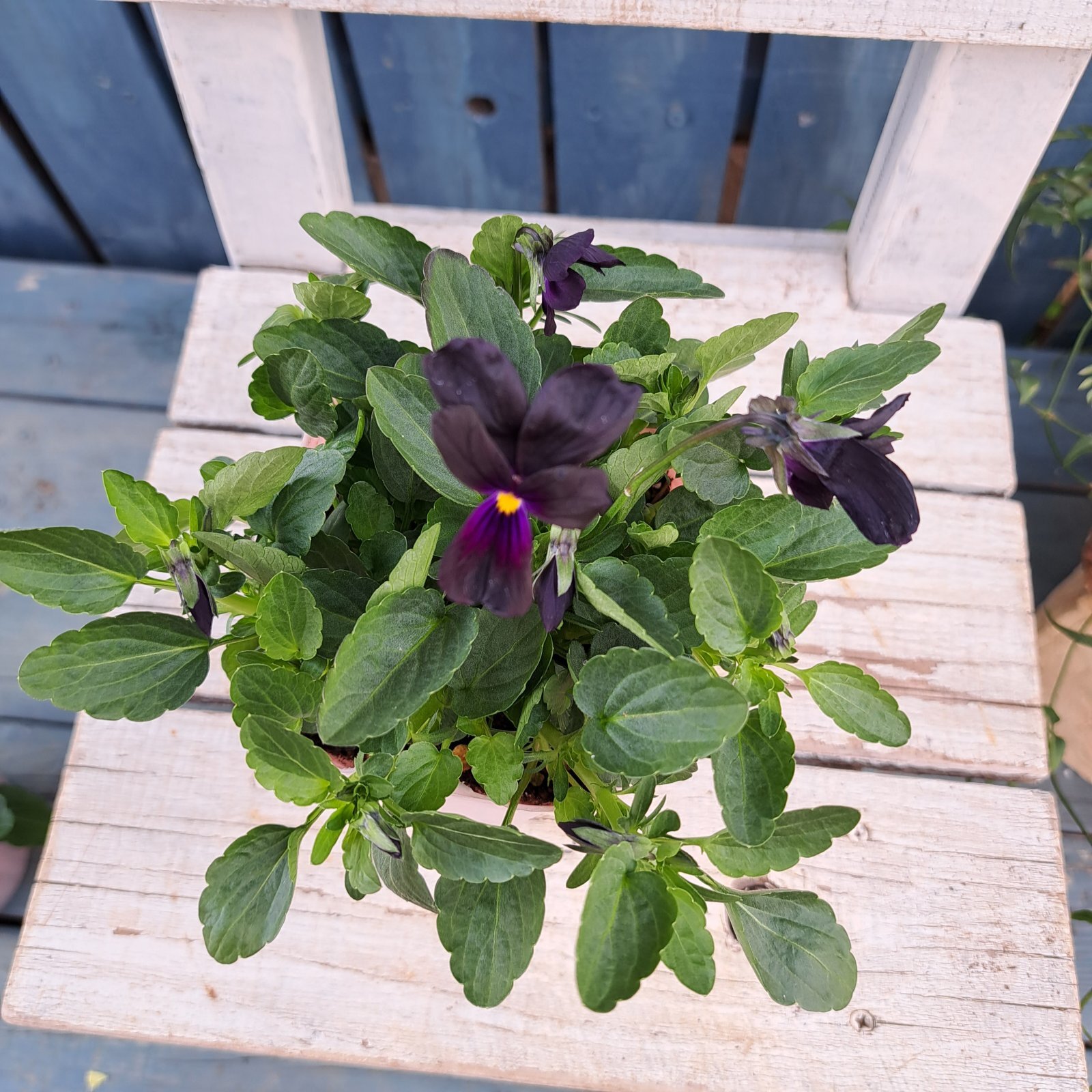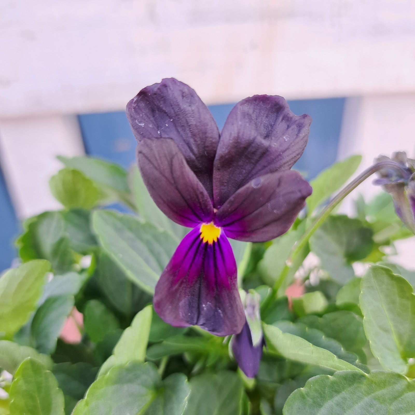 上部2枚の花弁が細長く、ウサギの耳のように見える小輪ビオラ。