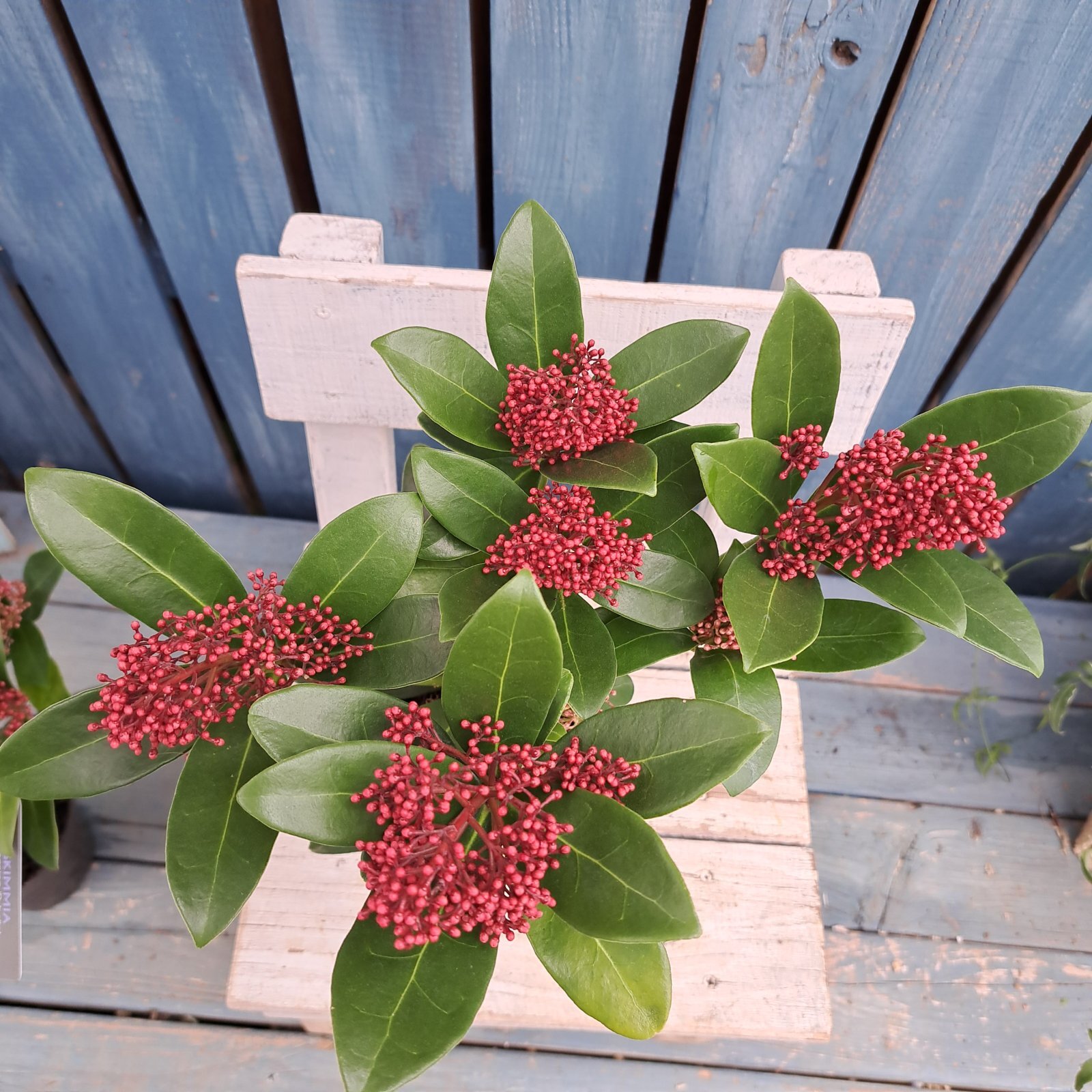 スキミア 赤 ルベラ(3.5号プラ鉢)